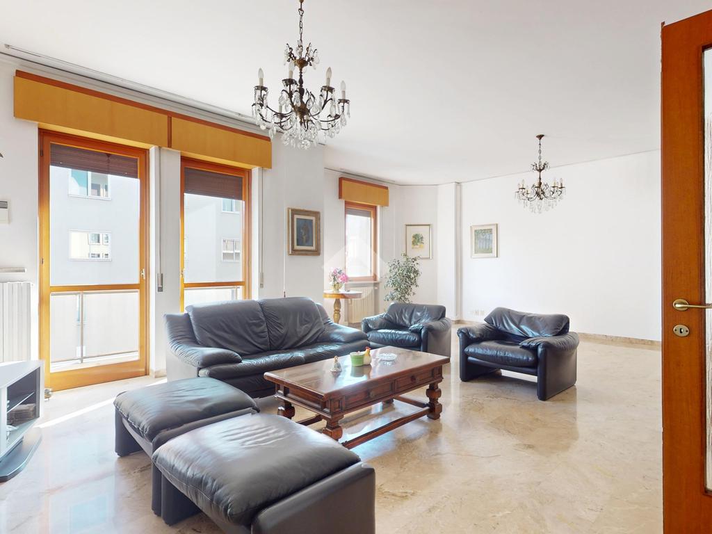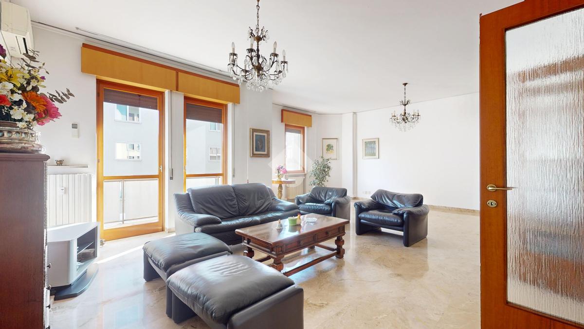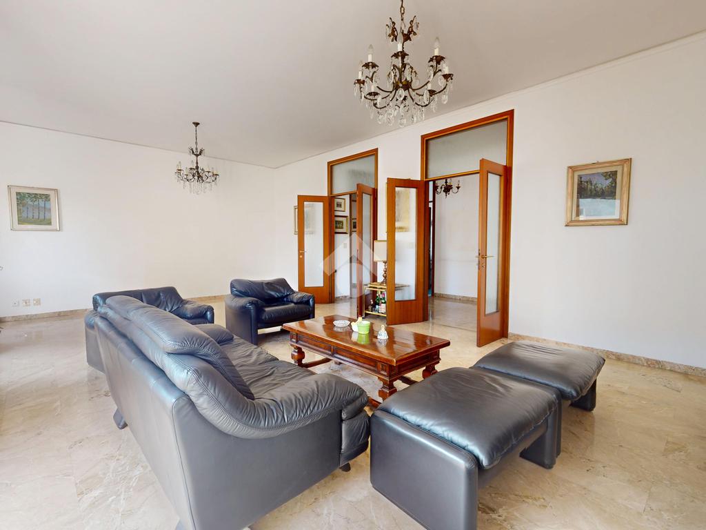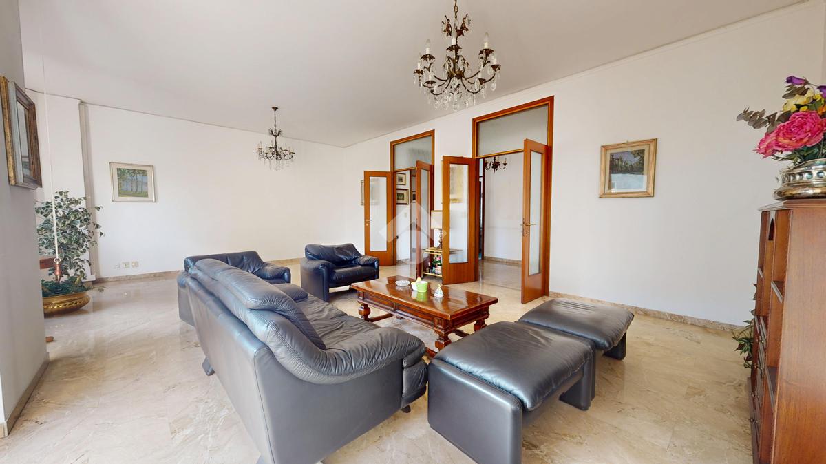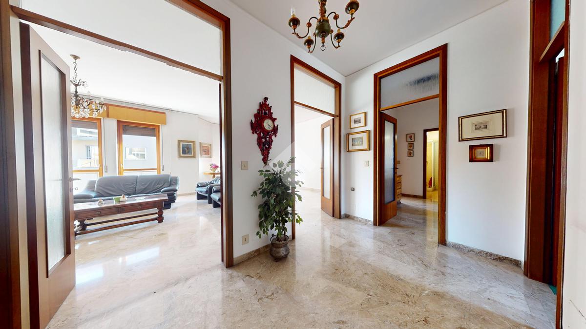 DESCRIZIONE DELL’IMMOBILE: L’immobile si apre su un grande disimpegno d’ingresso che conduce alla zona giorno composta da un soggiorno molto spazioso, caratterizzato da tre ampie portefinestre che affacciano sul primo terrazzo abitabile e che garantiscono un'eccellente illuminazione naturale. Alla destra dell’ingresso si trova la cucina abitabile, anch’essa molto luminosa, grazie alla grande portafinestra con accesso diretto al secondo terrazzo. La zona notte, separata da un corridoio, comprende una camera matrimoniale, una camera doppia e due bagni: uno finestrato con disimpegno e uno cieco. Entrambi si presentano in buono stato e con sanitari ben mantenuti.